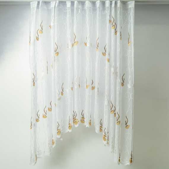 Perdea bucatarie deja confectionata cu arcada. Perdeaua are o latime de 3 metri, o inaltime de 1,80 metri in parti si 1,40 metri in mijlocul arcadei.